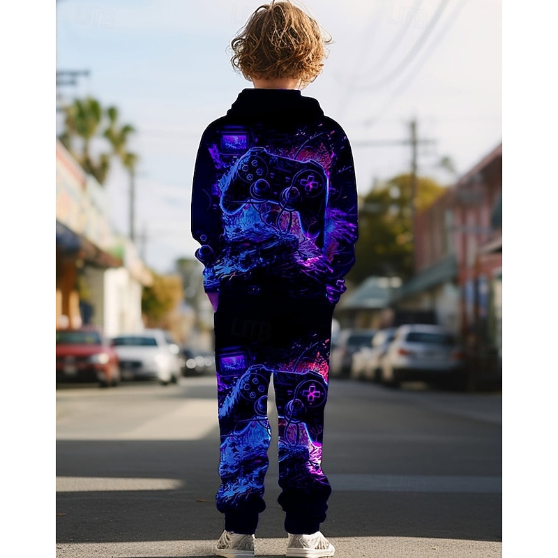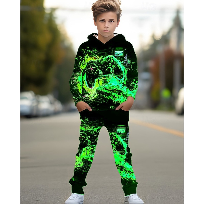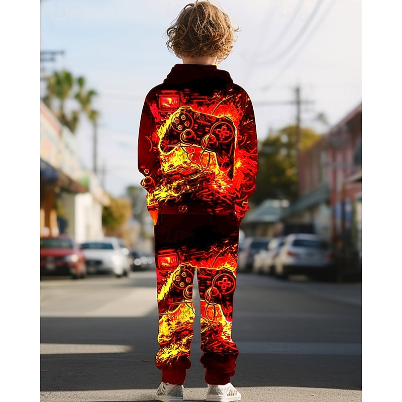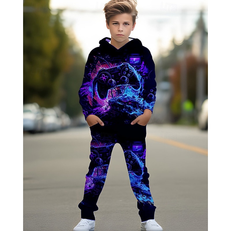 HOT ! Boys 3D Graphic Game Hoodie & Sweatpants Set Sports Suit Tracksuits Long Sleeve Spring Fall Daily Basic Casual Kids 4-12 Years Hooded Outdoor Vacation Sports Tailored Fit