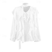 More information about Women's Shirt Solid Color Elegant Bohemia Vintage Long Sleeve V Neck Regular Tops Work Daily Holiday Lace up Ruffle White Pink Blue Summer Spring Fall
