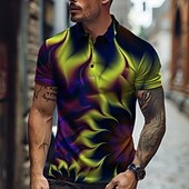 More information about Men's Graphic Neon Polo Shirts Golf Shirt Short Sleeve Polo Shirts Collared Shirts Casual Vacation Wear Rave Wear Party Outfits Buttons 3D Print Spring & Summer Yellow Orange