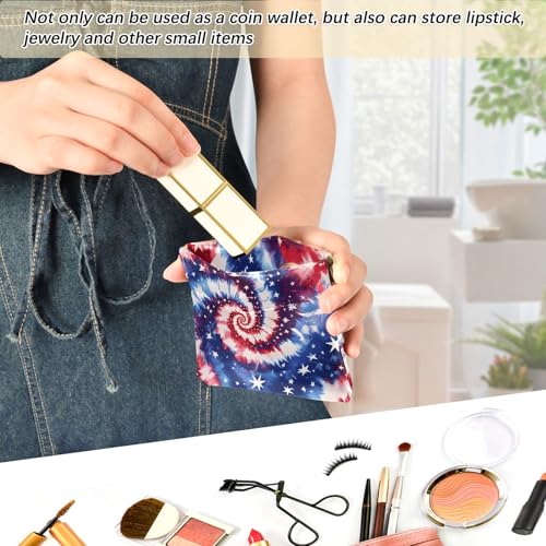 Coin Purse for Women American Flag Tie Dye Swirl Coin Pouch Change Holder PU Leather Mini Wallet Portable Coin Bag Money Pocket 5