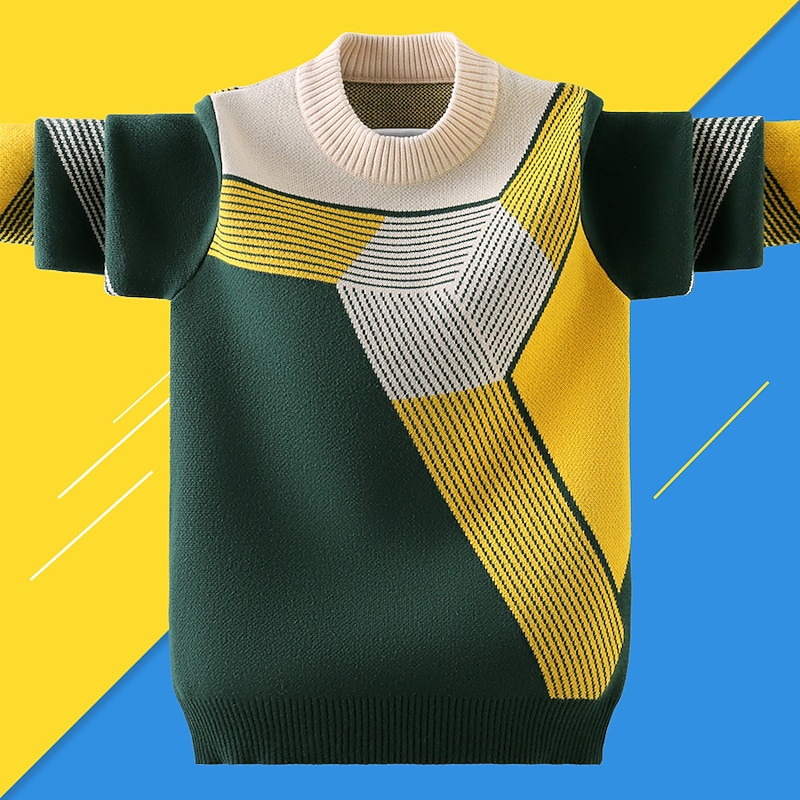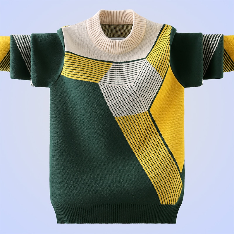 More information about Boys 3D Color Block Sweater Long Sleeve Fall Winter Active Adorable Kids 4-12 Years School Daily