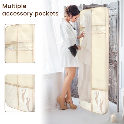 Travel Wedding Dress Garment Bag, 300D Oxford Cloth Suit Protector Dust Cover, Multi Pocket Foldable Gown Bag for Women Wedding Dress Suit(Beige) 3