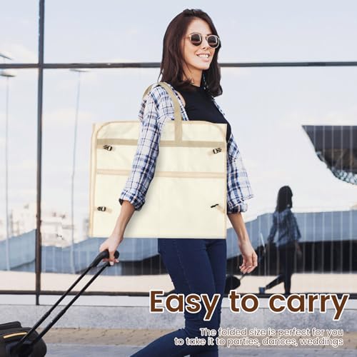 Travel Wedding Dress Garment Bag, 300D Oxford Cloth Suit Protector Dust Cover, Multi Pocket Foldable Gown Bag for Women Wedding Dress Suit(Beige) 2