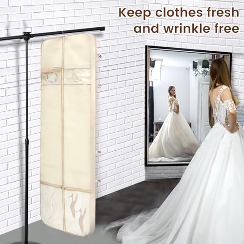 HOT ! Travel Wedding Dress Garment Bag, 300D Oxford Cloth Suit Protector Dust Cover, Multi Pocket Foldable Gown Bag for Women Wedding Dress Suit(Beige)