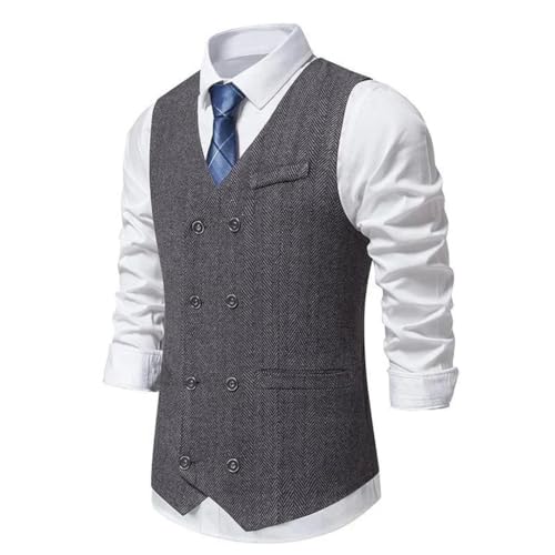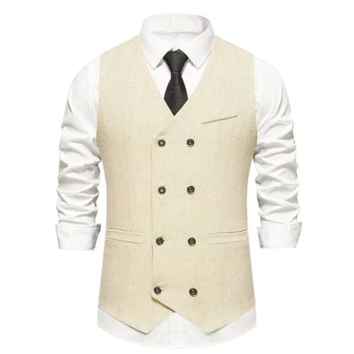 Men Solid Color Herringbone Double-Breasted Sleeveless Slim Fit Flat Pockets Suitable Wedding Vests 1