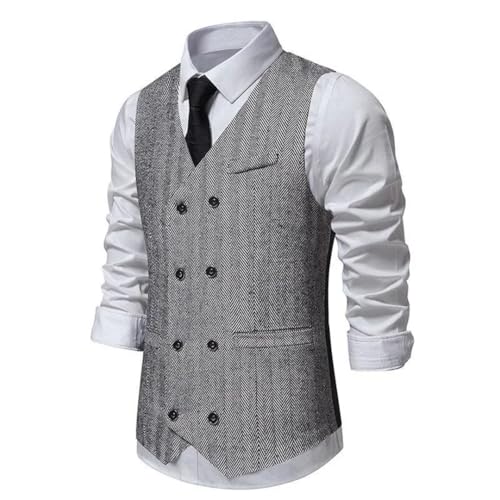 Men Solid Color Herringbone Double-Breasted Sleeveless Slim Fit Flat Pockets Suitable Wedding Vests 6