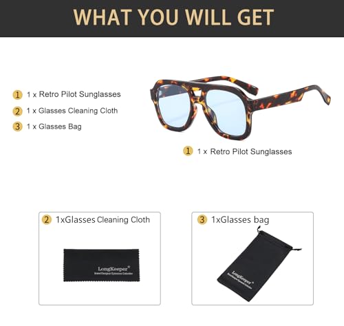 More information about Long Keeper Retro Pilot Sunglasses Double Bridge Women Men Aviation Square Sun Glasses Thick Frame 70s Vintage Shades UV400