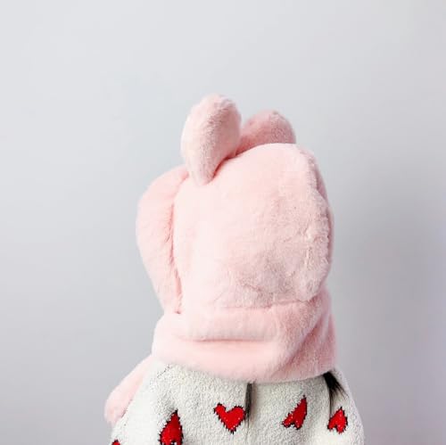 JZ 2 in 1 Kids Faux Fur Hooded Scarf Set Girls,Winter Bow Hat for Girl,Warm Plush Thermal Trapper Hat Earflaps 3