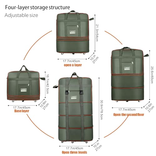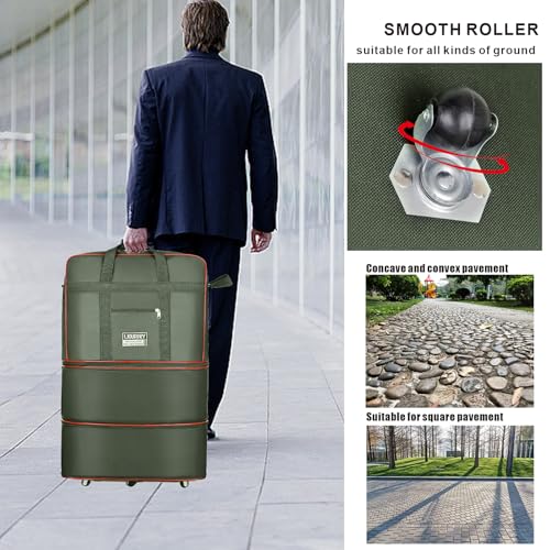 Expandable Large Capacity Travel Bag Oxford Cloth Duffel Bag with Wheels Lightweight Waterproof Travel Foldable Suitcase(ArmyGreen) 5