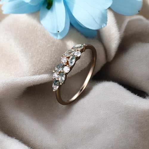 Why Choose Moss agate cluster wedding band exclusive marquise cut moss agate wedding band Vintage Moissanite ring Solid gold ring Valentine Day gift?