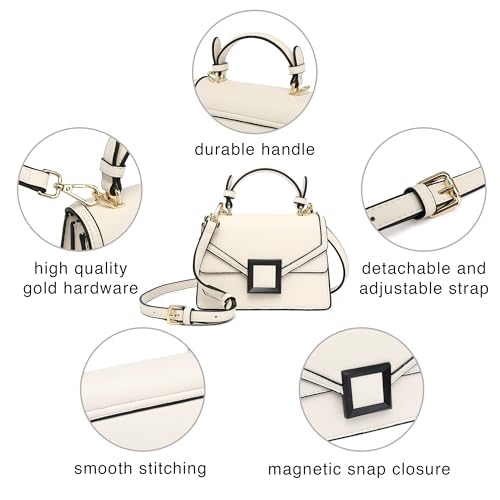 • [Design] - Minimalist colors; Stylish front square accent; Classic gold hardware; Magnetic snap closure to secure belongings; Thick flap cover; Lightweight; Easy to use and carry around; Perfect design to look chic; Different carrying ways such as woman handbag, satchel bag, cross body bag, shoulder bag, top handle purse, clutch bag, fashion tote bag, etc.