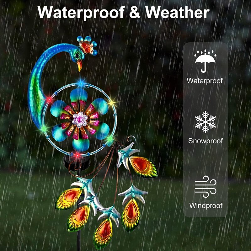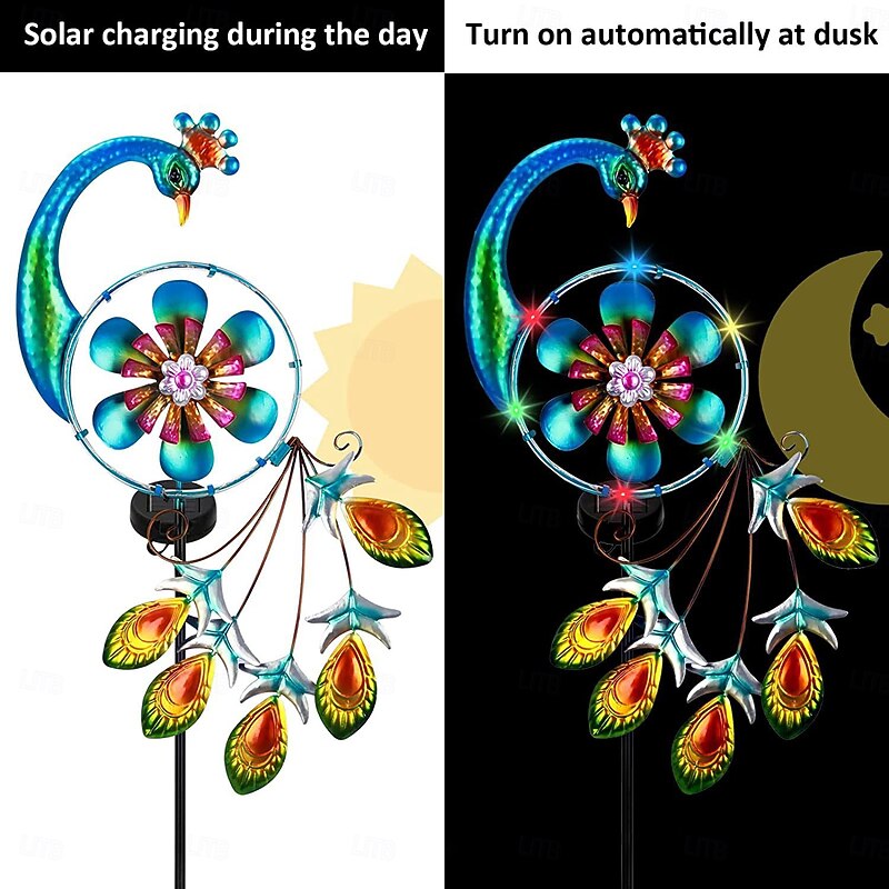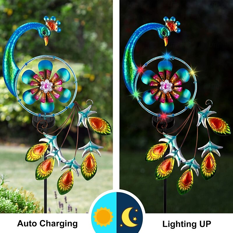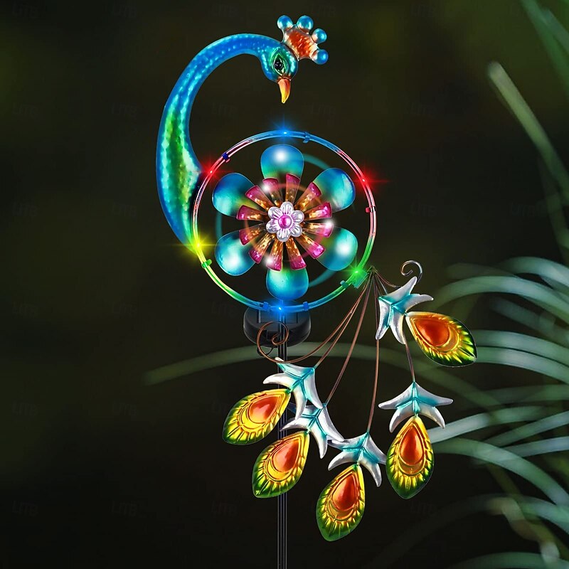 1 Pc Outdoor Solar Metal Peacock Decorative Floor Plug in Light Windmill Courtyard Garden Lawn Path Landscape Light 5