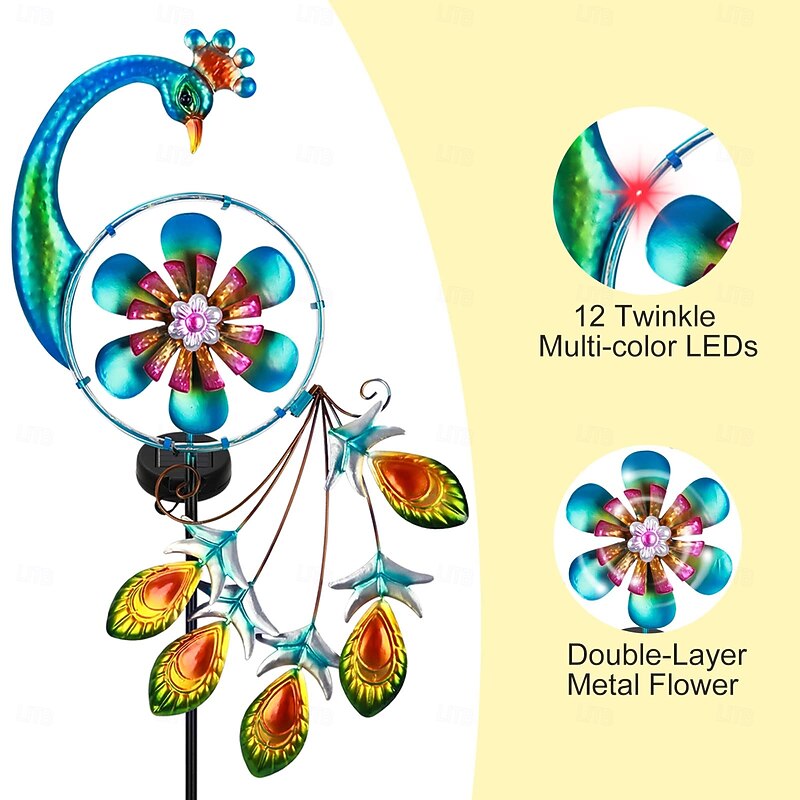 1 Pc Outdoor Solar Metal Peacock Decorative Floor Plug in Light Windmill Courtyard Garden Lawn Path Landscape Light 12