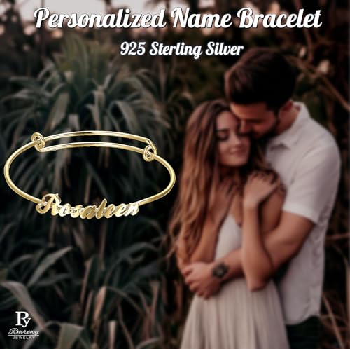 sought-after ! RMREWY Sterling Silver Personalized Name Bracelet Handmade Engrave Name Adjustable Bangle Custom Jewelry Christmas Gift for Women Mom