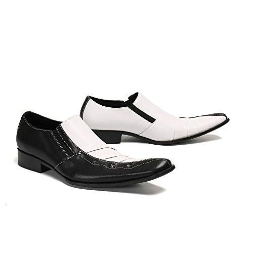 Formal Loafer Dress Oxford for Men Two Tones Fold Texture Loafers for Men Block Heel Slip On for Meeting Genuine Leather(9) 5