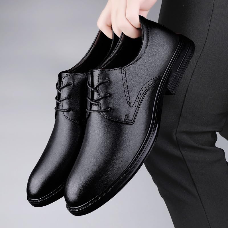 Dress Shoes for Men Lace Up Round Burnished Toe Leather Derby Shoes Anti-Slip Block Heel Non Slip Resistant Wedding 6