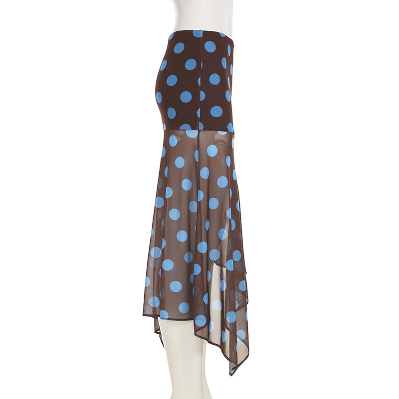 CORIRESHA Women's Y2K Contrast Polka Dot Midi Skirt Semi-Transparent Irregular Skirt 6