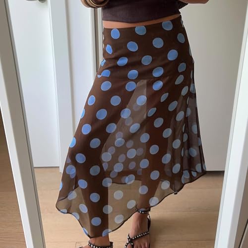 More information about CORIRESHA Women's Y2K Contrast Polka Dot Midi Skirt Semi-Transparent Irregular Skirt