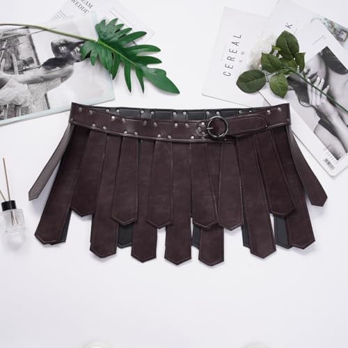 FEESHOW Medieval PU Leather Fringe Waist Belt Punk Adjustable Viking Knight Belt Tassel Skirt Waistband