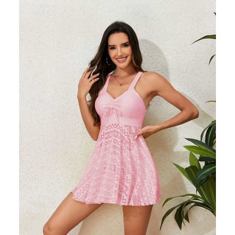 More information about Women's Swimwear Swimdresses 2 Piece Tankini Swimsuit Backless High Waist Vacation Beach Wear Solid Color V Neck Sleeveless Bathing Suits