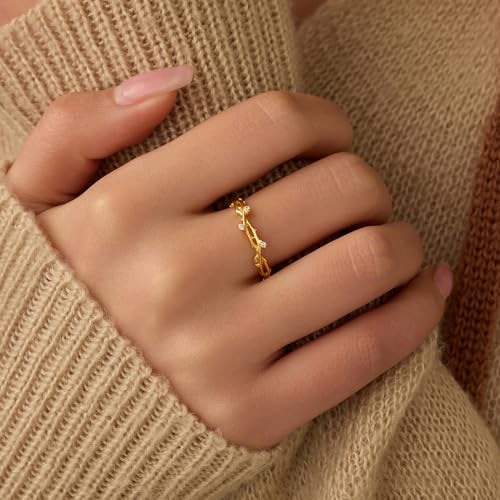 sought-after ! Vintage Gold Twig Ring for Mother, 925 Sterling Silver CZ Leaves Branch Hollow Stacking Ring to Daughter,14K Gold Plated Rings for Women Mother's Day Christmas Birthday Wedding Jewelry Gift