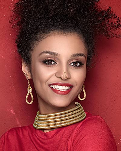 Hicarer 5 Pcs African Jewelry for Women, African Statement Choker Layered Collar Necklace Tribal Style Earrings Bracelet Faux Nose Rings Nose Cuffs Hoop Costume Jewelry Set for Women