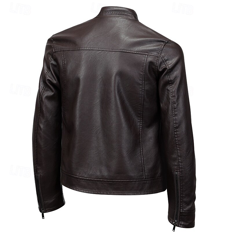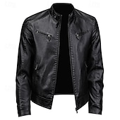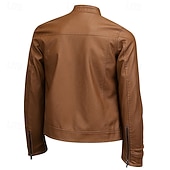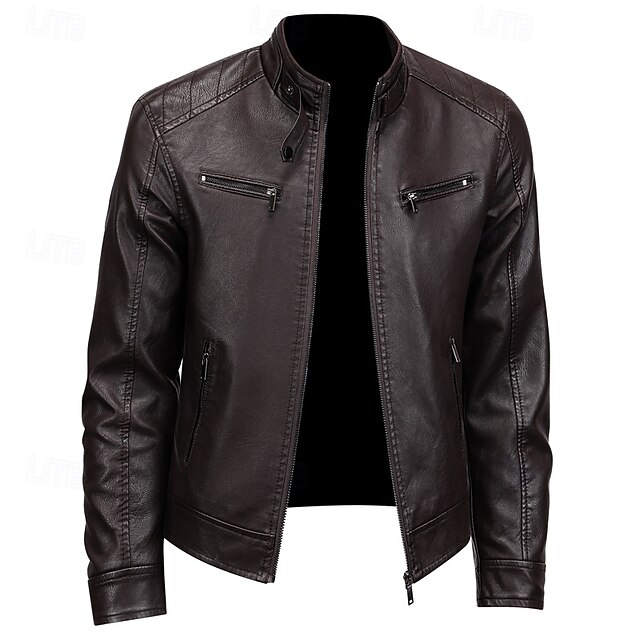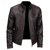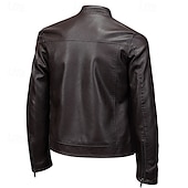 More information about Men's Faux Leather Jacket Motorcycle Jacket Outdoor Vacation Warm Zipper Pocket Fall Winter Plain Fashion Streetwear Standing Collar Regular Black Wine Brown Coffee Jacket