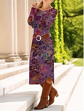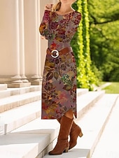 Women's Midi Dress Sheath Dress Shift Dress Casual Daily Regular Fit Graphic Paisley Abstract Long Sleeve Crew Neck Red Blue Purple Green Spring Fall Winter Autumn