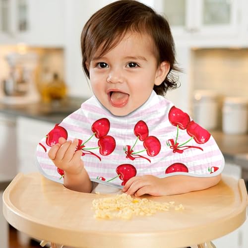 Striped Cherry Bow Sweet Baby Burp Cloths Baby Bibs Burp Clothes Cotton Burping Cloths for Babies Burp Cloth Curved Absorbent Washcloths for Baby Boy Girl Wipes 22x11IN,2 Pack 1