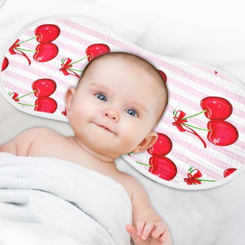 Striped Cherry Bow Sweet Baby Burp Cloths Baby Bibs Burp Clothes Cotton Burping Cloths for Babies Burp Cloth Curved Absorbent Washcloths for Baby Boy Girl Wipes 22x11IN,2 Pack 2