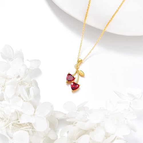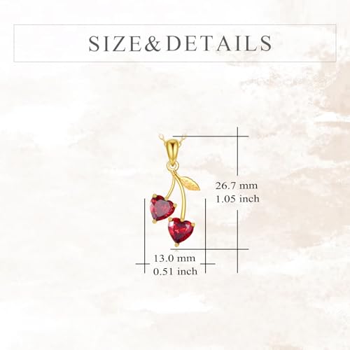 • 💗 Design: This cherry necklace is made of sterling silver with a gold cherry pendant and features cherry-shaped cubic zirconia stones for a cute and colorful look. This necklace is a sweet and cheerful accessory that will add a pop of fun to any outfit.