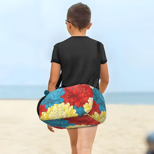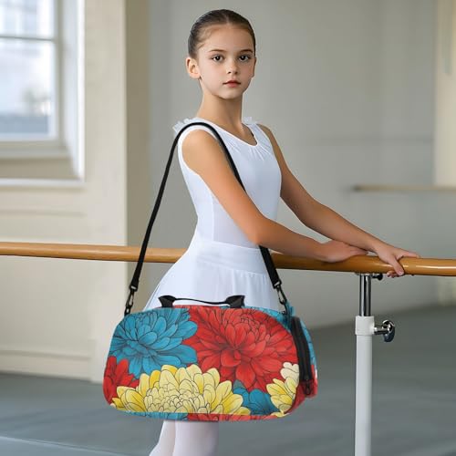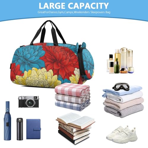 HOT ! Kids Sports Duffel Bag for Boys & Girls - Colorful Floral Chrysanthemum Pattern 100% Polyester Gym Bag with Separate Shoe Compartment, Adjustable Shoulder Strap, Compact Travel & Workout Gea