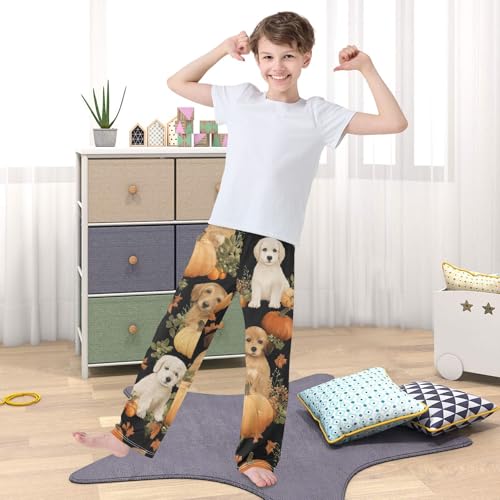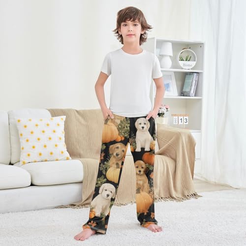 Terrier Dog Pumpkins Boys Long Pants Soft Trousers Elastic Waist Kids Lounge Bottoms with Pockets S-XL 6