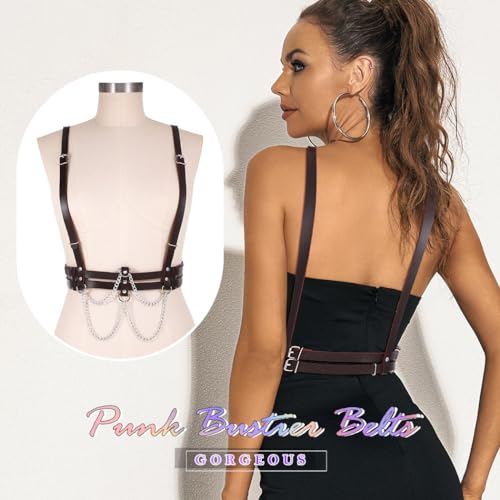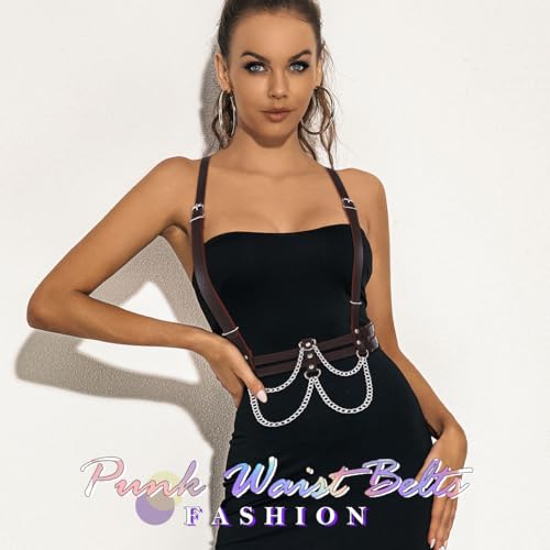 More information about REETAN Leather Body Harness Punk Waist Harness Belts Layered Rave Accessories Belt for Women (Brown)