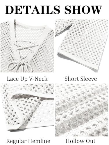• Features: Oversized Beach T Shirts for men, bohemian vacation style style, lace up, v-neck, half sleeve, loose fit, the hollow see through design makes you feel cool in this summer while also standing out in the crowd