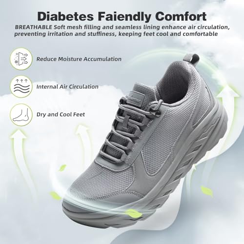 More information about Men's Orthopedic Diabetic Extra Wide Width Toe Box Walking Shoes: Fit Comfortable Neuropathy Plantar Fasciitis Orthotic Arch Support Heel Pain Relief Sneakers, Casual Swollen Shoes Grey Size 10.5