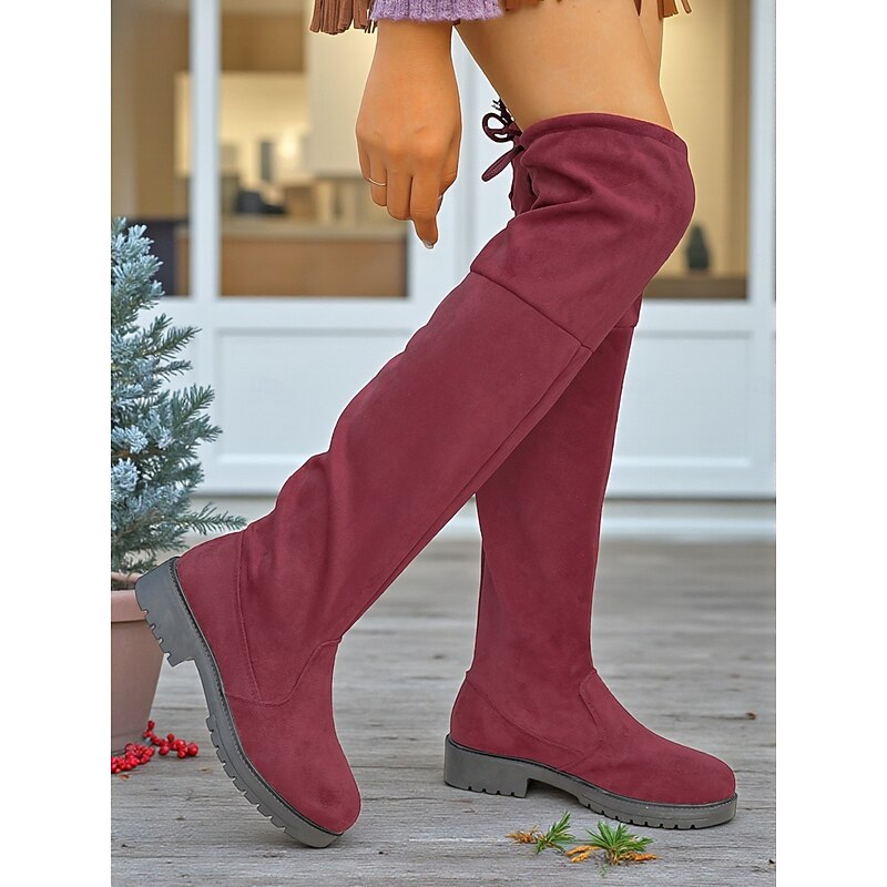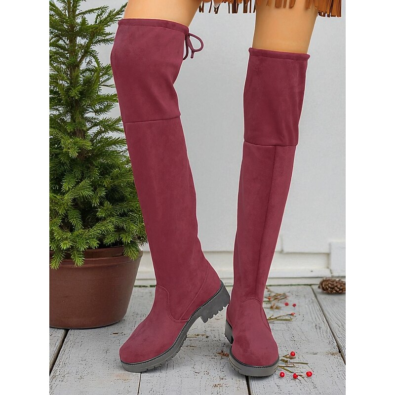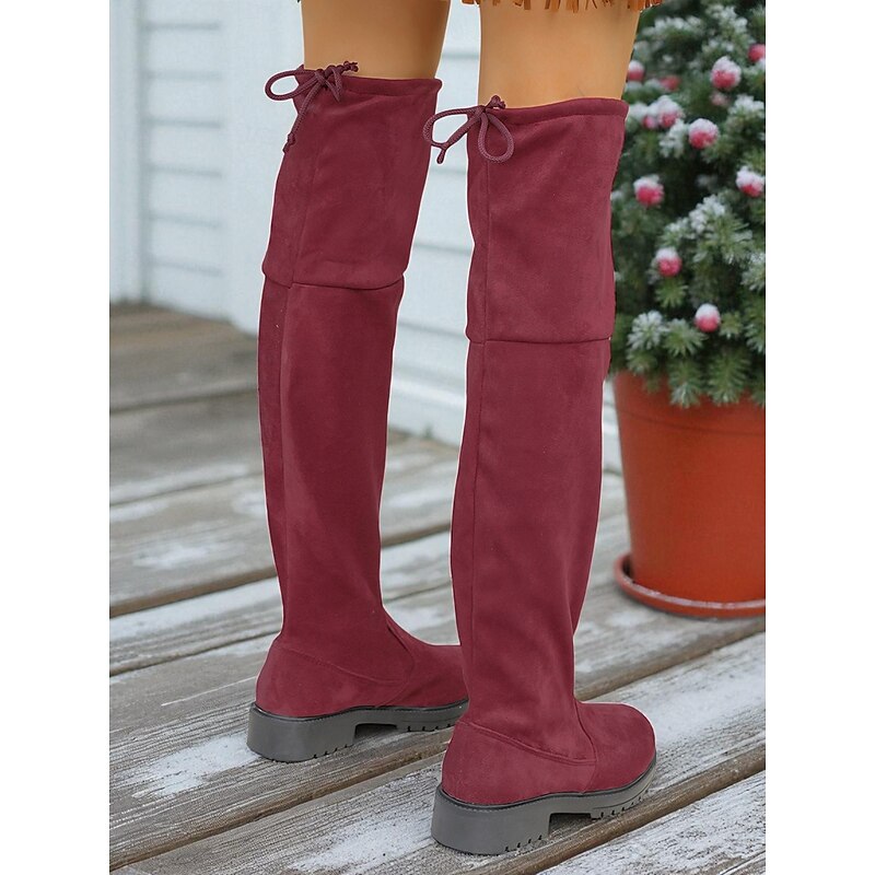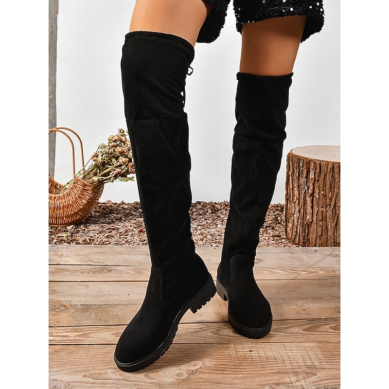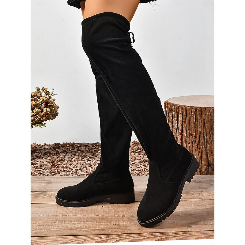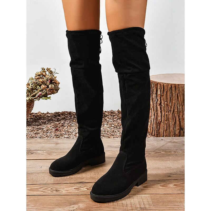 HOT ! Women's Faux Suede Over the Knee Boots with Tie Back – Casual Stretch Tall Boots for Fall, Winter and Streetwear Outfits