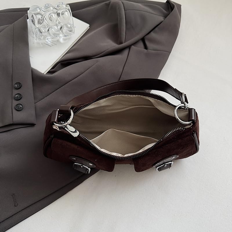 Suede Shoulder Bags for Women 2025 Fall Purse Y2k Clutch Handbag Vintage Shoulder Purse Crossbody Bag 1