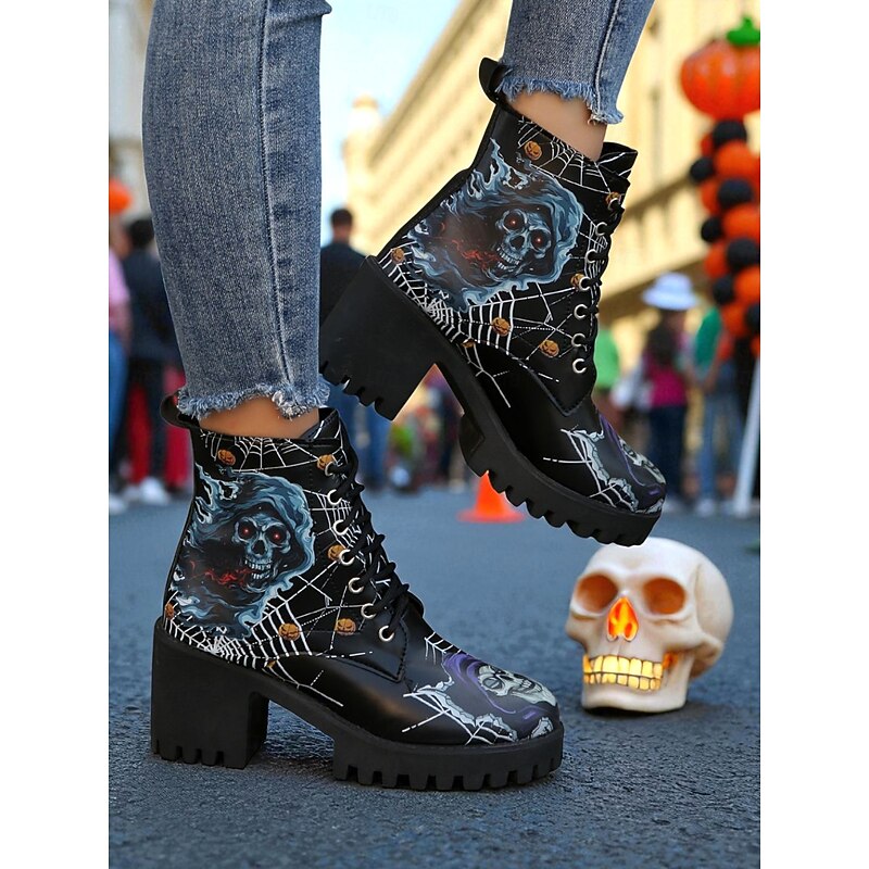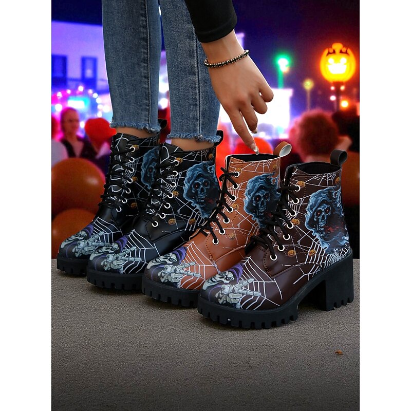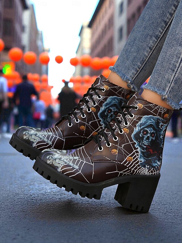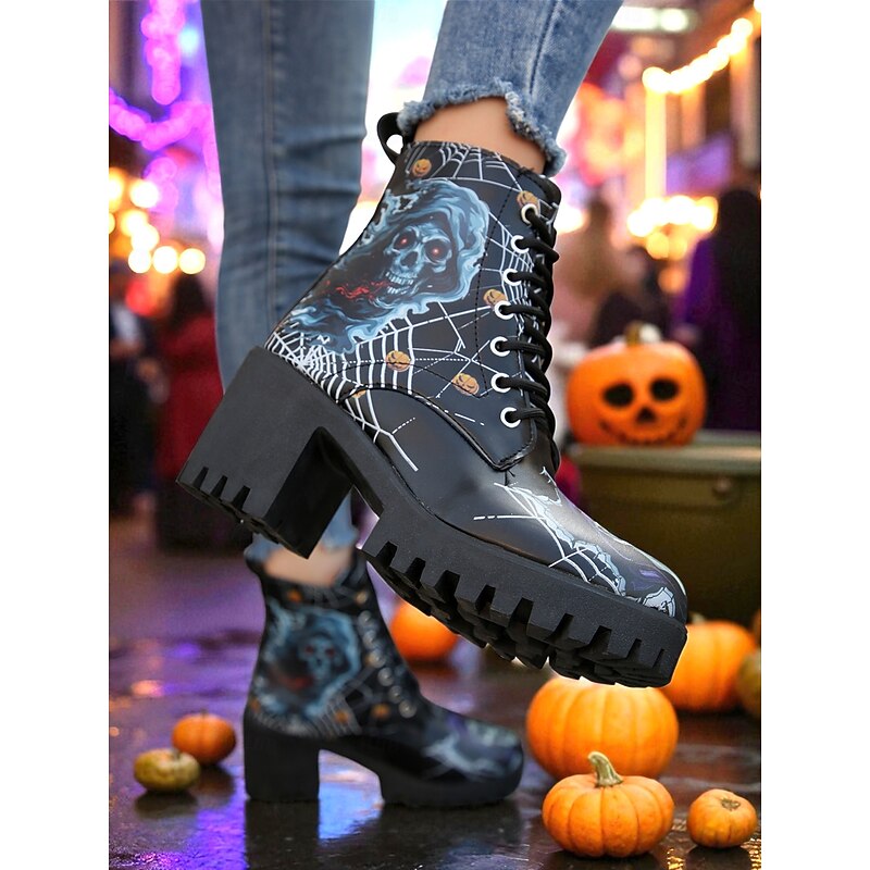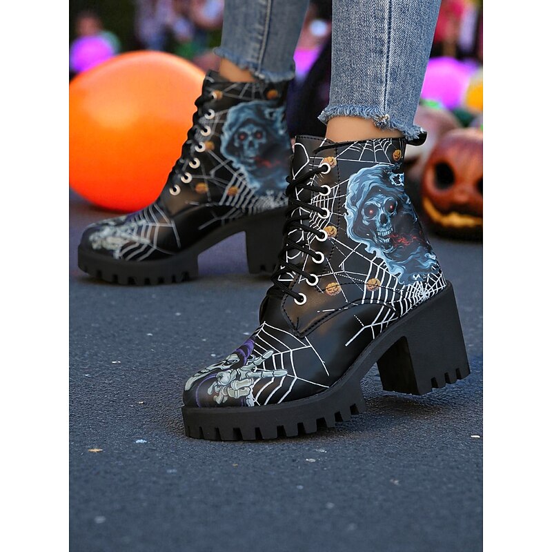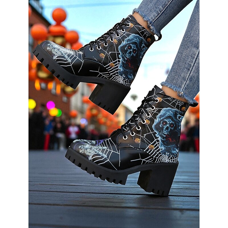 $34.99 - Women's Halloween Skull Spider Web Gothic Ankle Boots – Chunky Heel Lace-Up Faux Leather Shoes for Spooky Parties and Cosplay 2025. Shop for cheap Shoes For Women online? Buy at lightinthebox.com on sale today!