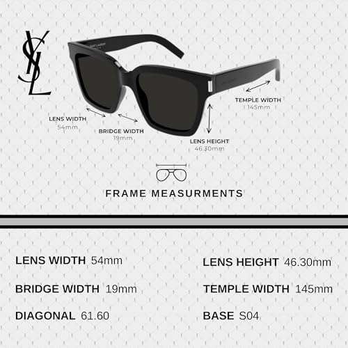 • Perfect Fit: Experience the Perfect Fit with these Saint Laurent sunglasses. Featuring lens dimensions of 54mm width, 46.3mm height, 19mm bridge, and 145mm temple length, these shades offer both style and comfort. Elevate your style with the timeless appeal of these sunglasses, tailored for the modern men and women.