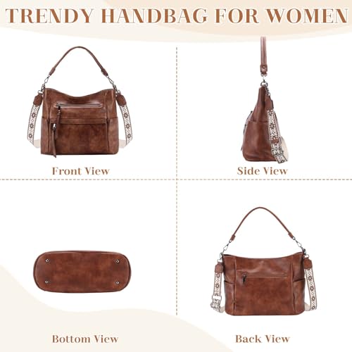 • ✨Stylish and Versatile: This women’s medium hobo vegan leather handbag features a retro and classic design, making it a chic addition to any outfit. It comes with a small pouch perfect for use as a wallet or phone bag. The tote bag includes two shoulder straps—a leather strap for shoulder bag carrying and a detachable guitar shoulder strap for crossbody versatility.