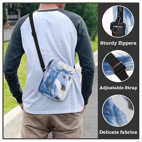Crossbody Bag Blue Gold Marble Horse Messenger Bag for Women Men Purse Shoulder Bag Satchel Bag with Adjustable Strap 214B9247 6