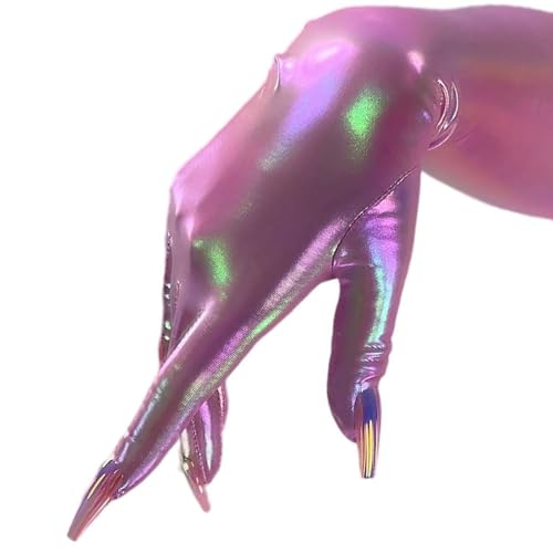 sought-after ! DooWay NAIL GLOVES in HOLOGRAPHIC Pink 70CM 28" Shoulder Long Metallic Liquid Shiny Extra Thin Elastic TECH Evening Party Cosplay Costume Glove with Nails