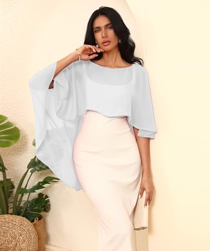 • Lightweight Chiffon Capelet, Enjoy Free Fashion:Made of soft chiffon, it's light, comfortable and durable. Skin-friendly, quick-drying and breathable, allowing free movement. Suitable for daily use and outdoor nights, bringing comfort in the breeze.