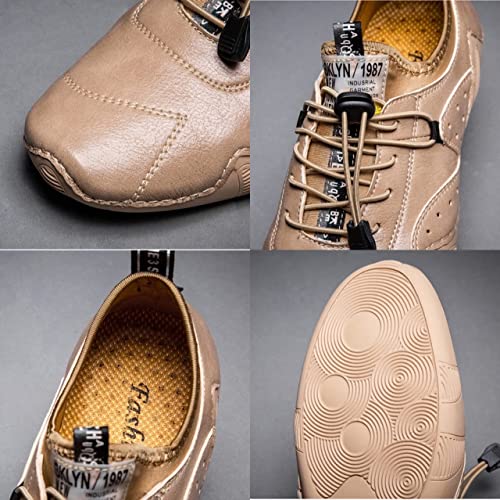 DESESE Mens lace up Hand Stitching Leather Soft Casual Driving Shoes,Breathable Comfortable Sneakers Outdoor Loafers Boat Shoes 7