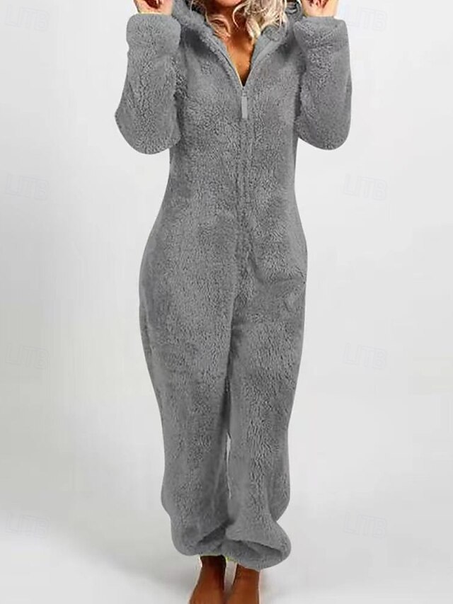More information about Women's Normal Jumpsuit Streetwear Solid Color Long Sleeve Hooded Zipper Vacation Daily Loose Fit Black Wine Red Fall
