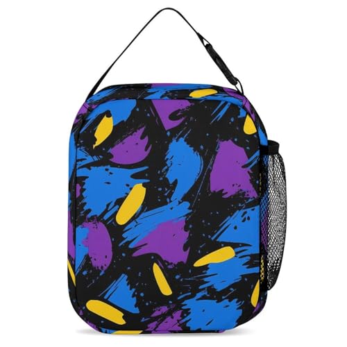 90s Graffiti Blue Purple Yellow Backpack Shoulder Bags Lunch Bag Pencil Case Box 3 Set Daypack Cute 1