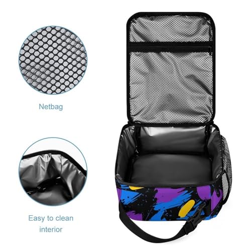 90s Graffiti Blue Purple Yellow Backpack Shoulder Bags Lunch Bag Pencil Case Box 3 Set Daypack Cute