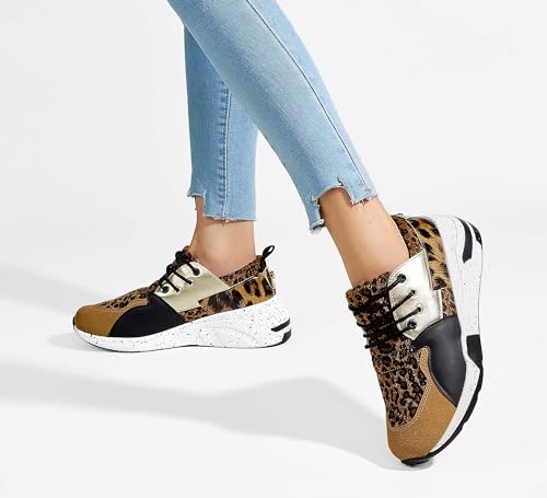 LUCKY STEP Women's High Heel Wedge Sneakers Fashion Cliff Platform Retro Lace Up Casual Shoes 6