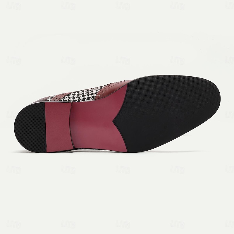 HOT ! Men's Houndstooth and Leather Brogue Dress Shoes - Red and Black, Ideal for Formal Events and Business Wear